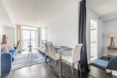 Feel at home in this cozy apartment located on a high floor in the heart of Downtown's Entertainment District. Spanning 650 sq. feet, this apartment features a master bedroom with a queen bed and a second bedroom in the den with another queen bed. The living room includes a futon for one person. Enjoy easy access to TTC, Union Station, Lake Shore, and Gardiner Expressway. You're just steps away from CN Tower, Rogers Center, Union Metro Station, Financial District, bars, restaurants, Sobeys Grocery Store, and Bishop Airport. This comfortable suite has everything you need to make you feel right at home. The fully functional kitchen is equipped with supplies including tea, coffee, a kettle, coffeemaker, and toaster. The apartment also features a washer and dryer with supplies, and a bathroom stocked with towels, shampoo, conditioner, body wash, a hair dryer, and other toiletries you may have forgotten at home. Paid underground parking with in/out privileges is available upon request for $20 per night. Pets are allowed in the apartment with a fee of $10 per night for one pet. A travel crib for babies aged 0-18 months and bed rails are available for $5 per item per night. Please request these in advance. Located in the bustling Downtown Entertainment District, this apartment offers unparalleled access to Toronto's vibrant city life. With TTC and Union Station nearby, commuting is a breeze. Explore nearby attractions like the CN Tower and Rogers Center, or enjoy the convenience of being close to the Financial District, bars, restaurants, and shopping at Sobeys Grocery Store. Bishop Airport is also just a short distance away. Guests must be 18 or over to check in. Guests whose names or ID do not match the information given are not allowed into the building. Smoking inside the apartment will result in penalties. Check-in requires providing guest information to condo management prior to arrival, including names and ID details. A selfie with ID in hand is required as an anti-fraud measure.