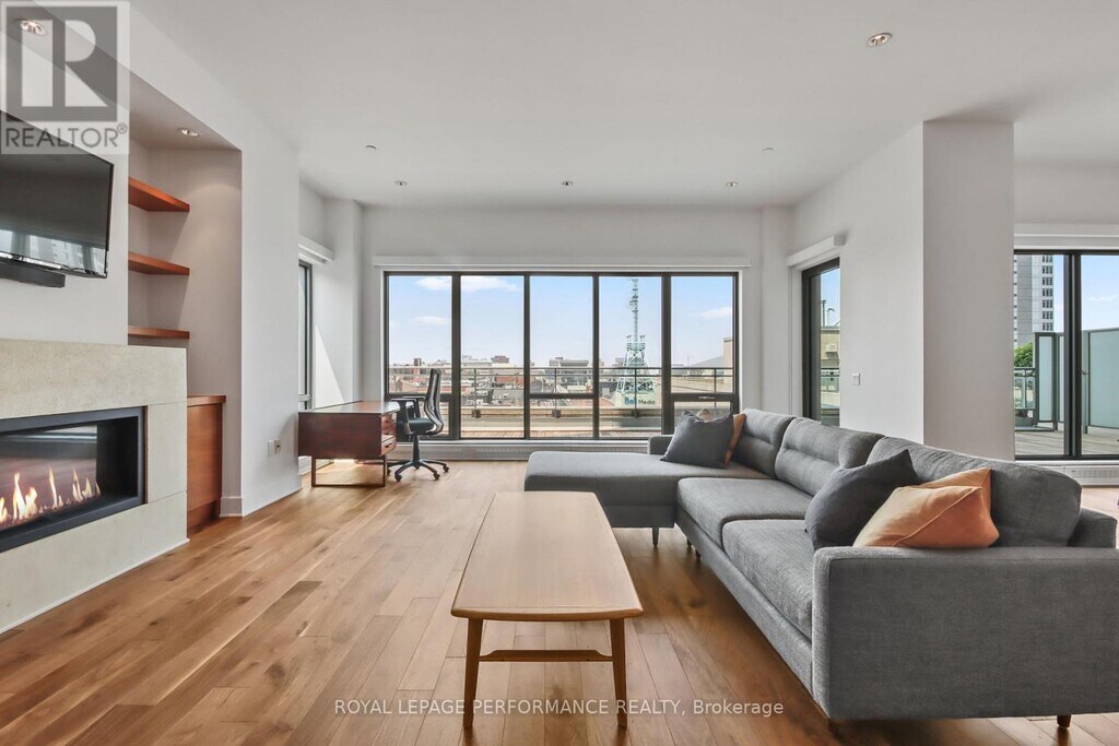Stunning oversized Executive condo in the heart of Ottawa's Byward Market. Soaring ceilings,huge windows,immmaculate walnut floors,a gas fireplace and a massive private outdoor deck set this unit apart from most others. Offered with or without furniture,this apartment is ideal for those seeking a super stylish apartment with a gym,pool,sauna,and party room,all with 24 hour security and concierge. Steps to shopping,restaurants and coffee shops,Parliament and LRT. Very unique and rare offering. (id:52069) ID#: 1870762