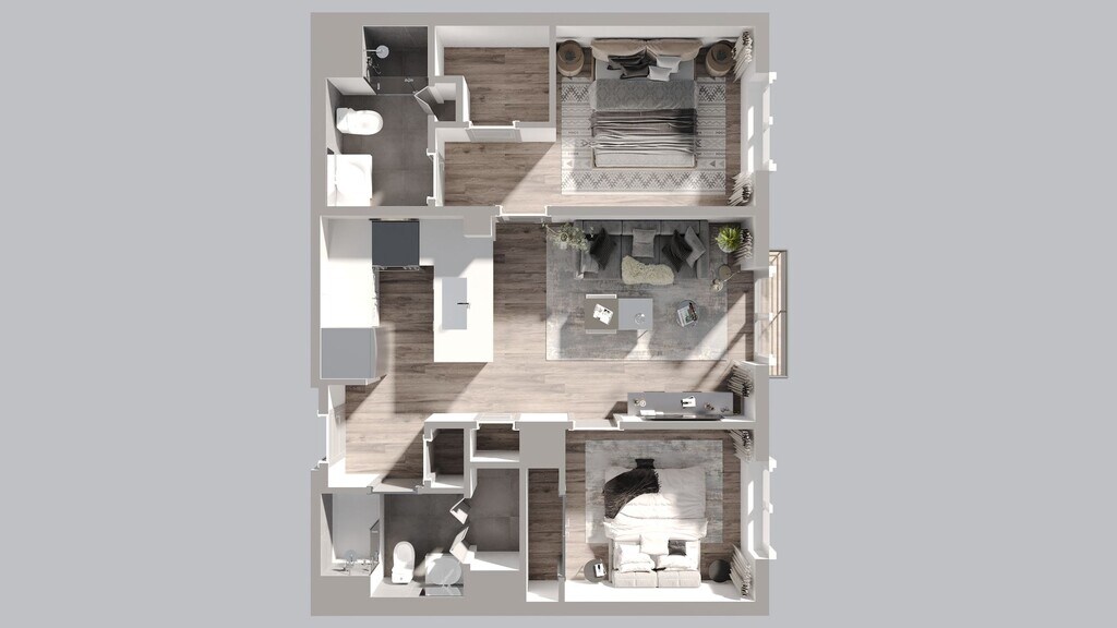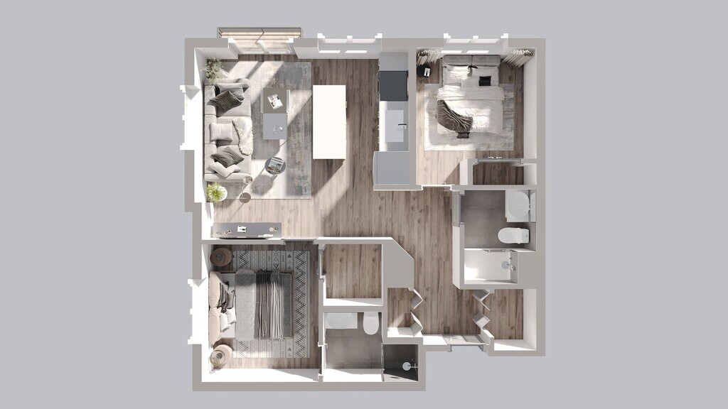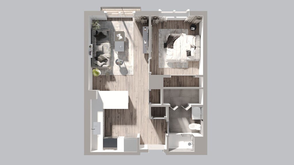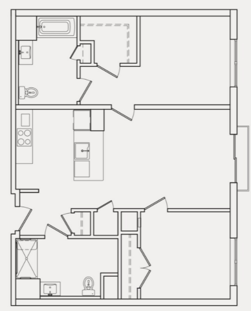 G - Floorplan 2 Apartment Unit: 409Apartment Model: G$2,5251 Bedroom, 1 Bath, 745 sq ftAvailable December 5, 20252 Bedrooms
