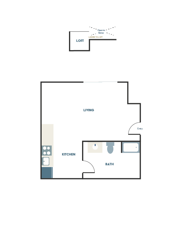 Studio A13 - Floorplan Apartment Unit: 240Apartment Model: Studio A13$1,580Studio, 1 Bath, 352 sq ftAvailable NowStudio A3 + Loft