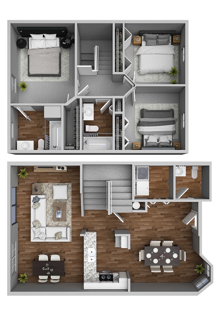 Apartment Model: 3 Bedroom TownhomeFrom $1,4053 Bedroom, 2.5 Bath, 1211 sq ftAvailable Now![]()