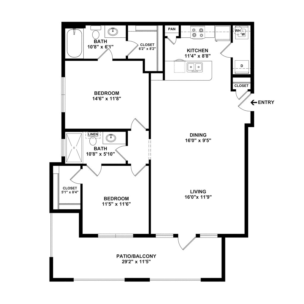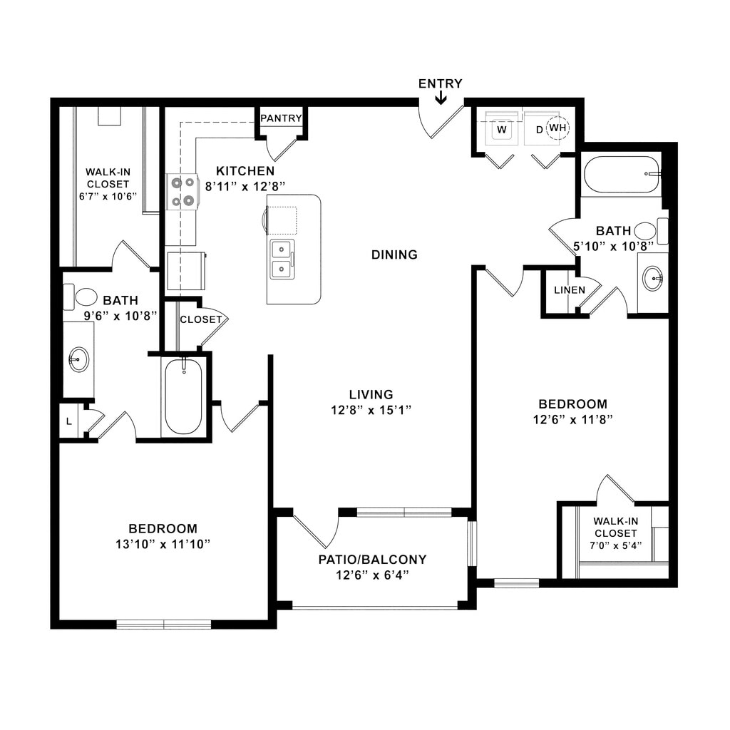 2 Beds, 2 Baths, 1148 sq ftAvailable January 1, 2026Largest 2 BedroomThis is the largest 2 Bedroom at this PropertyModel Gallery