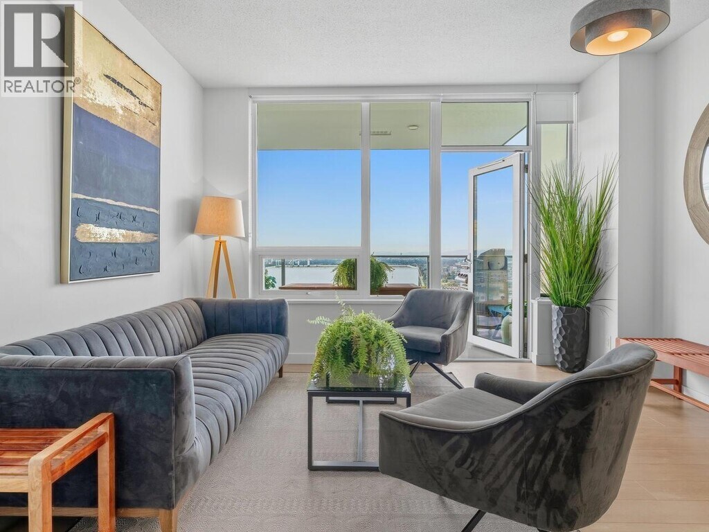 Live above it all at Riversky by Bosa! This luxurious 2 Bed + 2 Bath sub-penthouse offers 950 square ft of open living plus a 150 square ft terrace with spectacular panoramic river & city views. Enjoy a modern kitchen with premium appliances,gas cooktop,and island,in-suite laundry,central A/C,and two spa-inspired bathrooms. Includes 2 semi-private parking stalls. Exceptional amenities: gym,concierge,rooftop terrace & yoga studio. Steps to SkyTrain,Quay Boardwalk & River Market. ?? $3,500 / month available now! (id:52069) ID#: 1912467