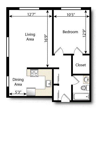 Downing 1 Bedroom x 1 Bath - Floorplan 1 ![]()