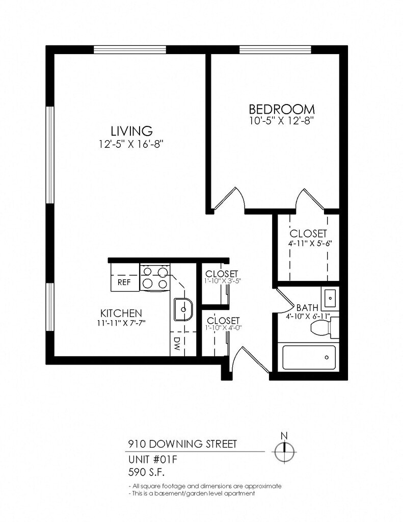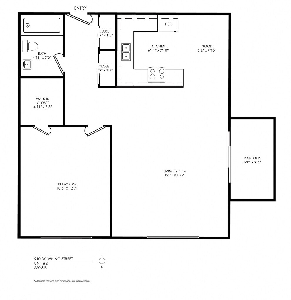 Downing 1 Bedroom x 1 Bath - Floorplan 7 Apartment Unit: 01BApartment Model: Downing 1 Bedroom x 1 Bath1 Bedroom, 1 Bath, 550 sq ftAvailable Now![]()