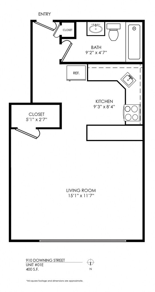 Downing Studio x 1 Bath - Floorplan 1 1 Bedroom