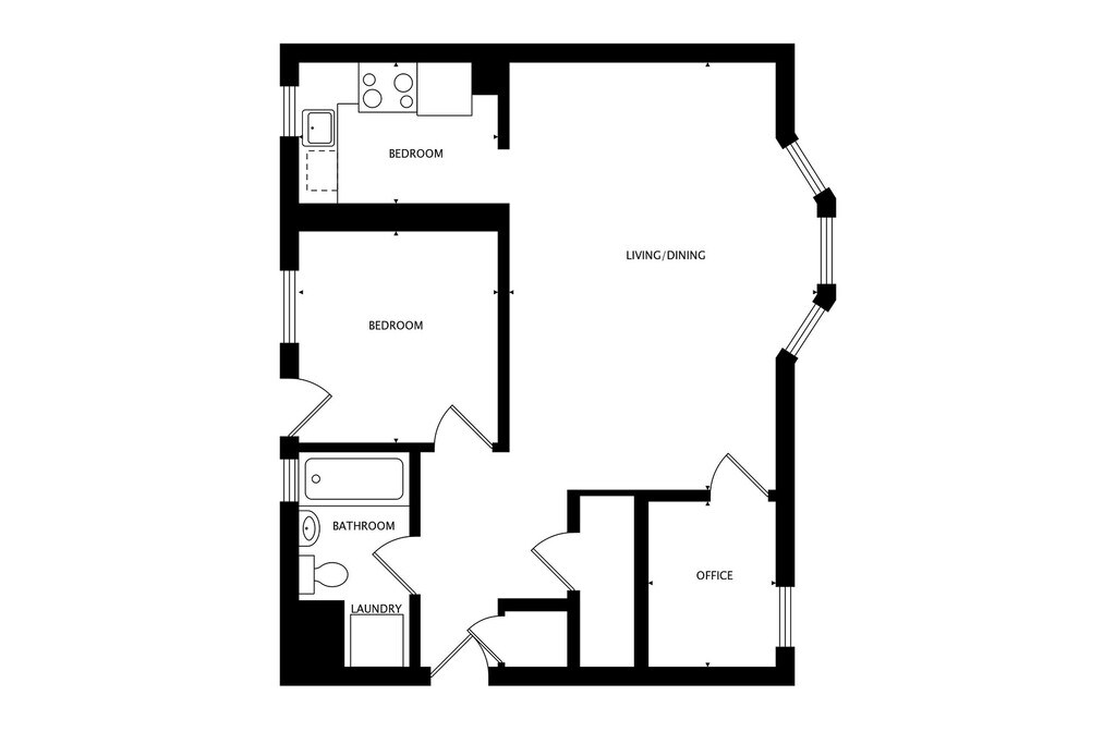 1 Bed 1 Bath - Floorplan 1 2 Bedrooms