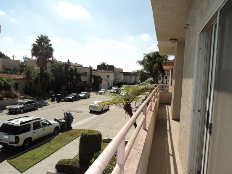 Large, two bedroom two bath in an 8 unit building. Front facing unit with three balconies. Each bedroom has its own bathroom. Bedrooms are separated by a hallway with no common wall. Hardwood floors throughout. Tiled bathrooms. Washer and dryer in unit. Fireplace. Comes with dishwasher, refrigerator, and stove. Building has secure access and gated parking for two cars. Beverly Hills adjacent. Close walk to shops on Robertson and La Cienega Park.