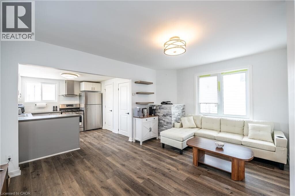 This charming 2-bedroom,1-bathroom bungalow is ideal for first-time buyers or those looking to downsize. Recently updated with fresh paint throughout,the home features a modern kitchen complete with stainless steel appliances,quartz countertops,and a bright newer windows that fill the space with natural light. The open layout,new flooring,and neutral finishes make it truly move-in ready,just unpack and enjoy. Step outside to a spacious backyard,perfect for summer BBQs,gardening,or a safe play area for children. The private side driveway accommodates up to 4 cars and leads to a detached garage,offering plenty of parking and storage. Located in a family-friendly Hamilton neighbourhood,this home offers easy access to schools,parks,shopping,and transit! Tenant pays utilities. (id:63800) ID#: 1999102
