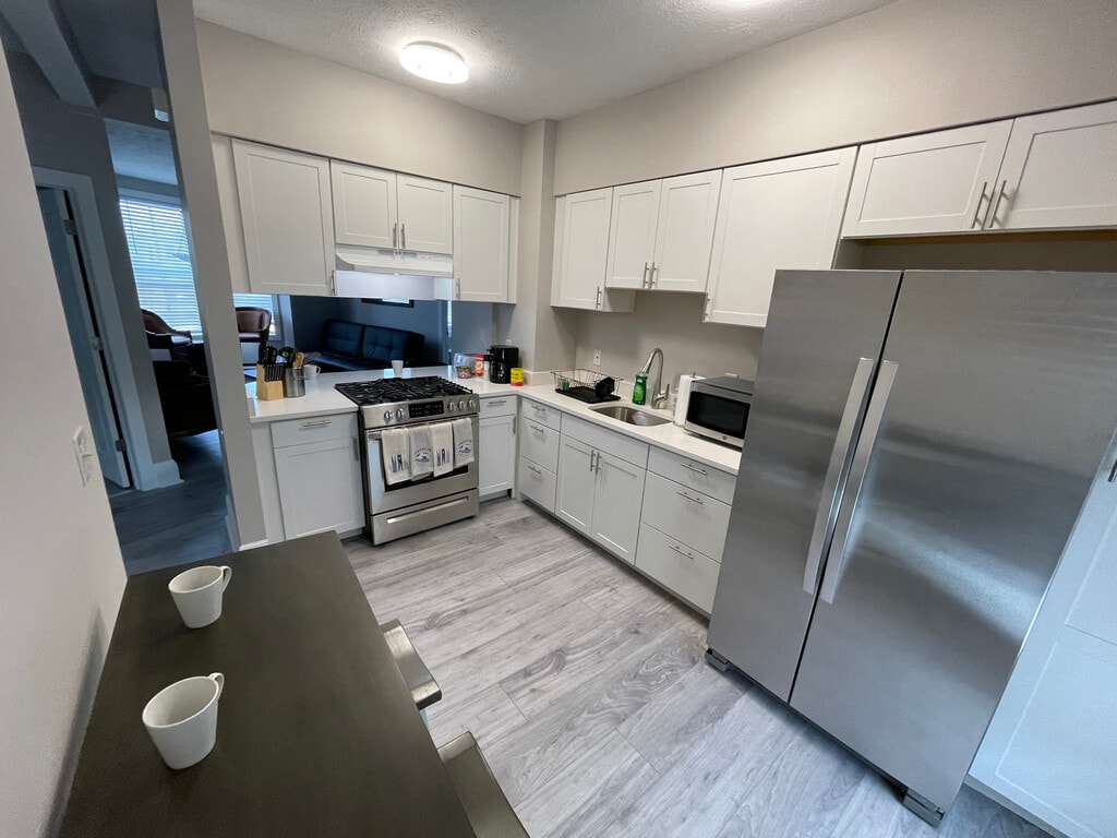 Newly Refinished spacious apartment, fully furnished. Just a 10 minute drive from Downtown Cleveland and Ohio City. Features Two queen beds, couch that can be turned into an additional bed, fully functional kitchen, Oven and Gas Stove Top, refrigerator/freezer, two 65 in in 4k smart TVs with all streaming apps (Netflix, MAX, Disney Plus, Peacock, Paramount + , STARZ), and parking lot with video surveillance. Shared washer and dryer in the buildings basement.