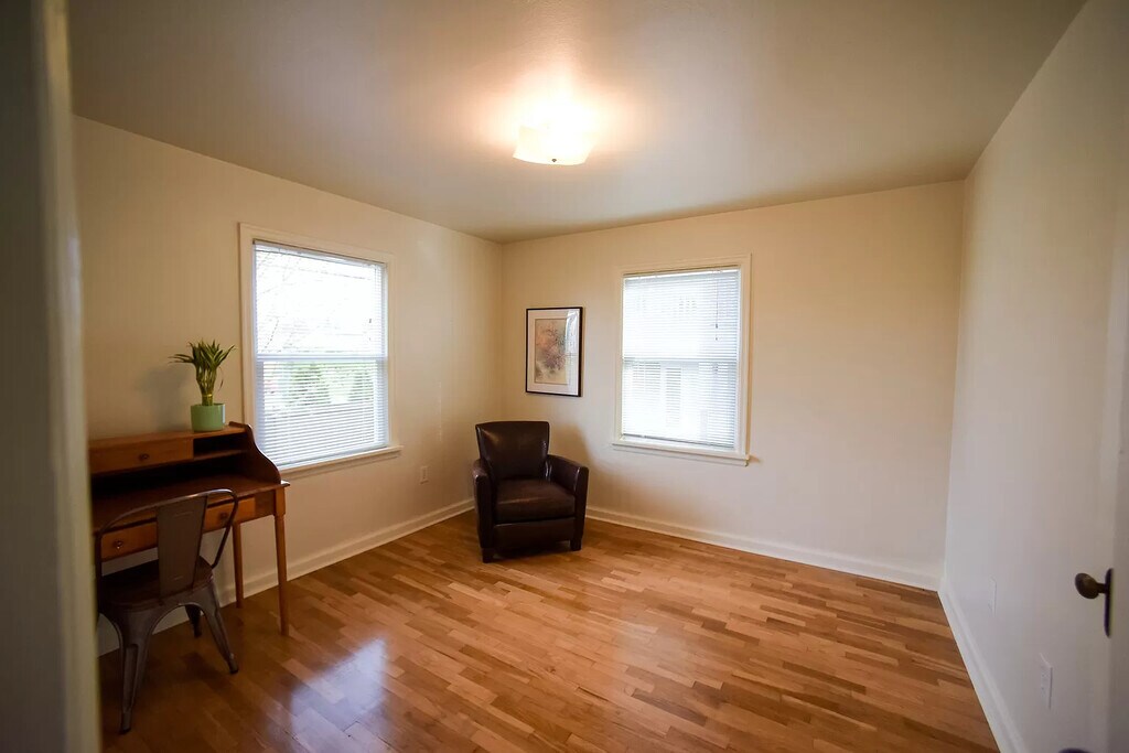 This upper duplex apartment is a restored 1930's house with coved ceilings, separate dining room, living room and a gas fireplace. It is a 2 bedroom, upper level unit, has hardwood oak floors thru out. This unit shines with every bit of it's '30s charm, but is fully renovated in the kitchen with new appliances. It has a gas range in the kitchen and a full size (large!) washer & dryer. The duplex is very energy efficient as it is fully insulated and has new windows in all rooms. The yard is completely fenced for privacy.