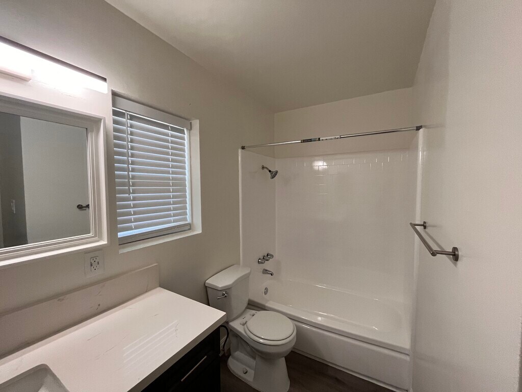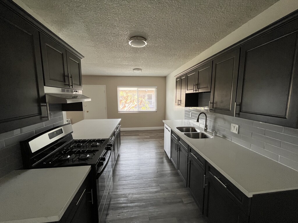 This apartment has hardwood-vinyl plank floors throughout most of the apartment, with new carpet in each of the bedrooms. There's a large living room that passes through to the kitchen area and has lots of built-in storages throughout the apartment. There are three spacious bedrooms, one with master half-bath. Apartment has been newly painted with two-tone paint throughout the apartment. Kitchen has been completely remodeled with new cabinets, undermounted sink, quartz counters, gooseneck faucet, new fixtures and stove. Bathrooms have also been remodeled with new vanity, fixtures and designer tile tub enclosure. Building has on-site laundry. Includes one parking spot and located near a neighborhood common area park to enjoy for all occasions.