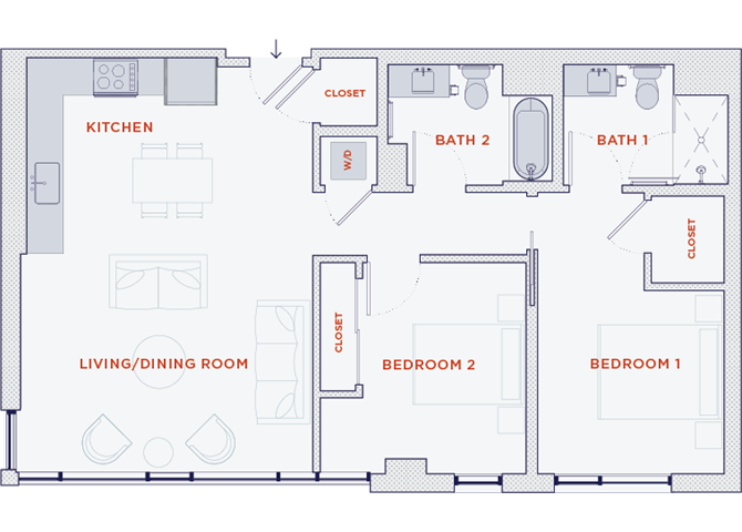 2 Bedroom | 983 sf - Floorplan 1 Apartment Unit: 219Apartment Model: 2 Bedroom | 983 sf$4,1312 Bedroom, 2 Bath, 983 sq ftAvailable November 18, 20252 Bedroom | 984 sf