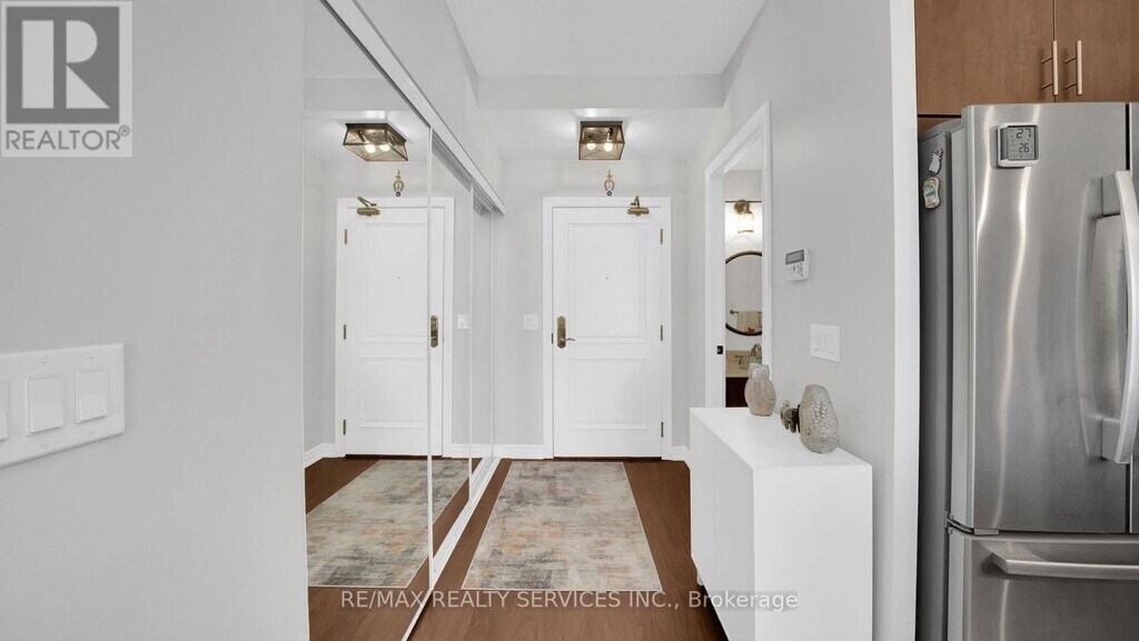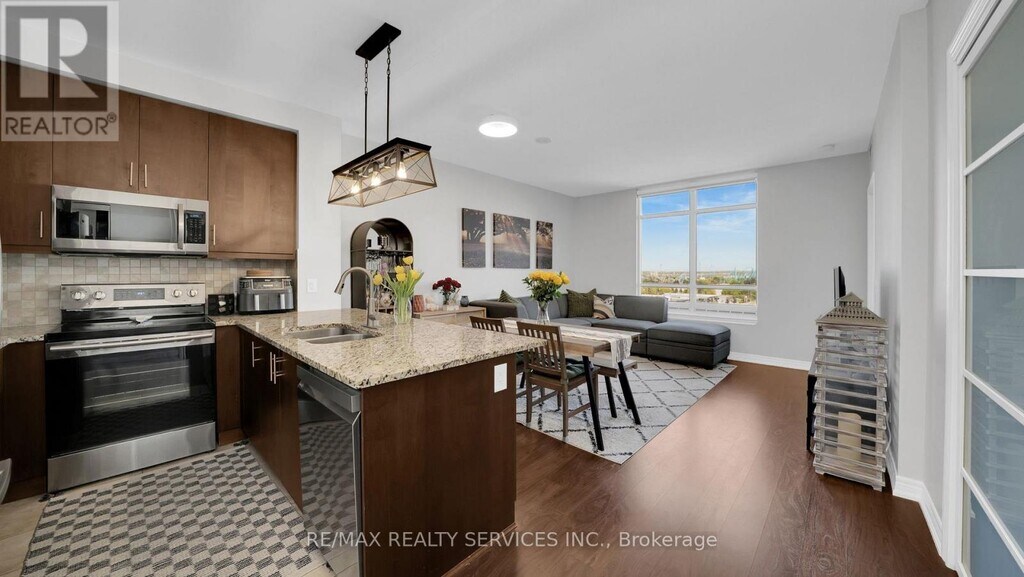 Experience up scale living in this upgraded 880 sq. ft.,2-bedroon suite within Bellaria Tower. The spacious,open -concept design features upgraded flooring throughout and a contemporary kitchen with stainless steel appliances,granite countertops,abundant cabinetry. A breakfast bar,and an under-mount sink. The main bedroom includes a walk-in closet with built-in wardrobe and a private 3-piece ensuite. A separate 4-piece bathroom serves guests. Enjoy amenities such as a fully equipped fitness centre,sauna,theatre room,social lounge,reading and relaxation areas,24-hour concierge service,and a staffed security gate. Situated on 20 acres of scenic walking trails,the prime location is just minutes from Vaughan Mills Mall,public transit,the Go station,Cortellucci Vaughan Hospital,parks,and fine dining options. The unit comes with two parking spaces and a large private storage locker positioned directly behind parking spot#5. (id:52069) ID#: 1859655
