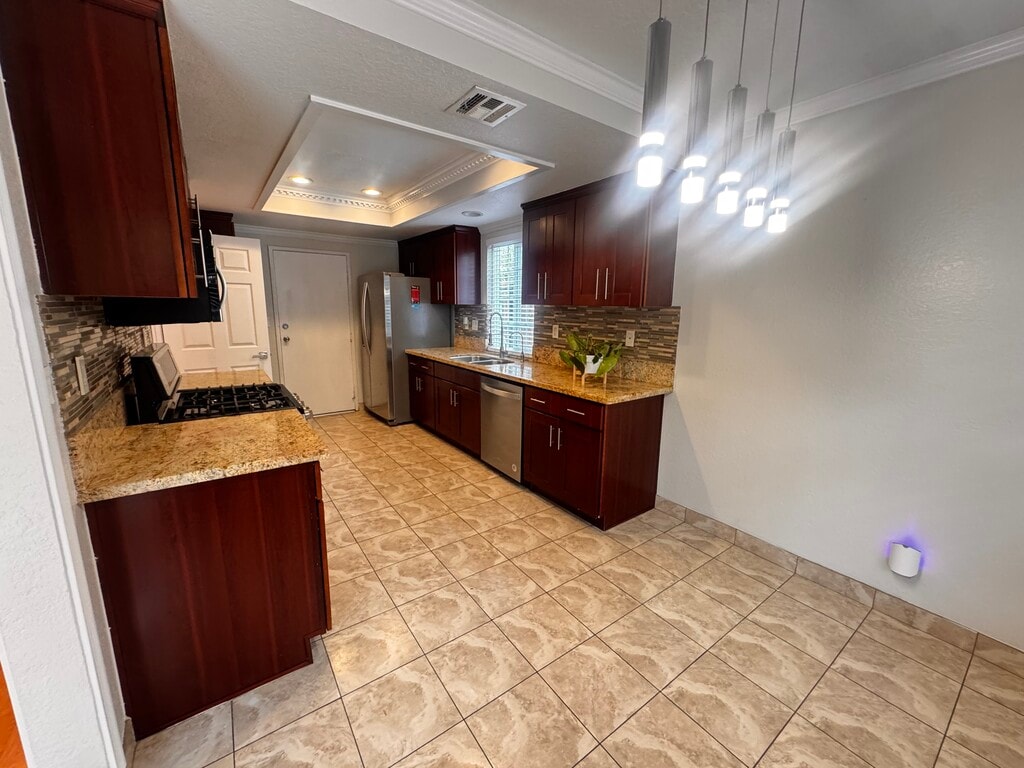 One story single family residence located in the desirable city of Monrovia, this updated single-story home offers 3 bedrooms, 2 bathrooms, and a private 2-car garage. The open floor plan features laminate wood flooring, recessed lighting, and a fireplace. The kitchen is complete with granite countertops, ample cabinetry, and a dining area. The master suite includes an upgraded bathroom, while the two additional bedrooms are spacious and bright. The private backyard is ideal for relaxing or entertaining . Recent upgrades include fresh paint, new HVAC, copper plumbing, dual-pane windows, Ring doorbell with camera, Nest thermostat, and solar panels with backup battery and tesla charger, installed in 2024. Monthly solar bill of $176 to be paid by tenant. Conveniently close to schools, shopping, dining, and just minutes to Old Town Monrovia. Gardener included. Refrigerator, washer and dryer are included.