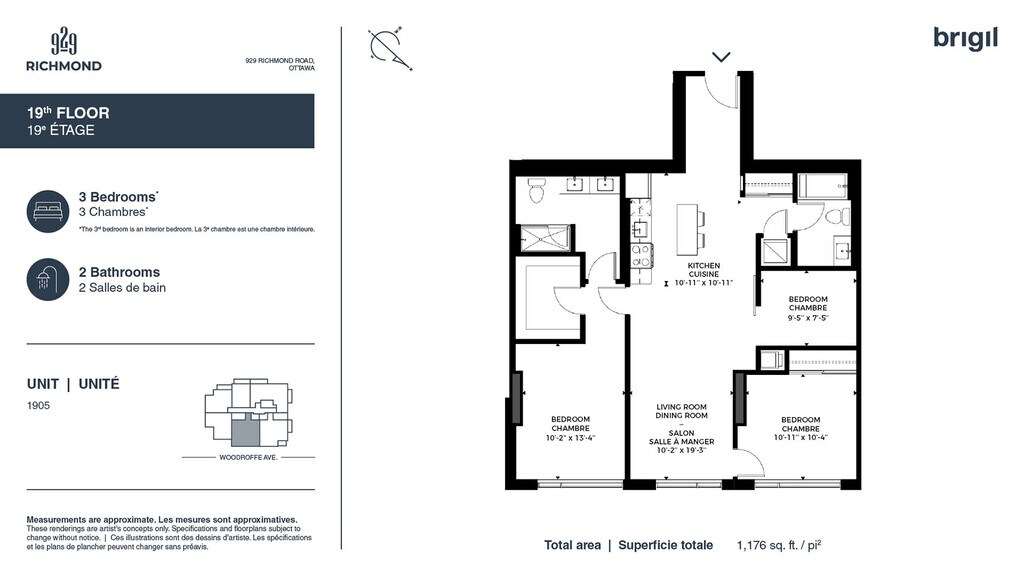 Unit: 1504 - Image 1 Apartment Unit: 1905Apartment Model: 3 bedrooms3 Bedroom, 2 Bath, 1176 sq ftAvailable Now![]()
