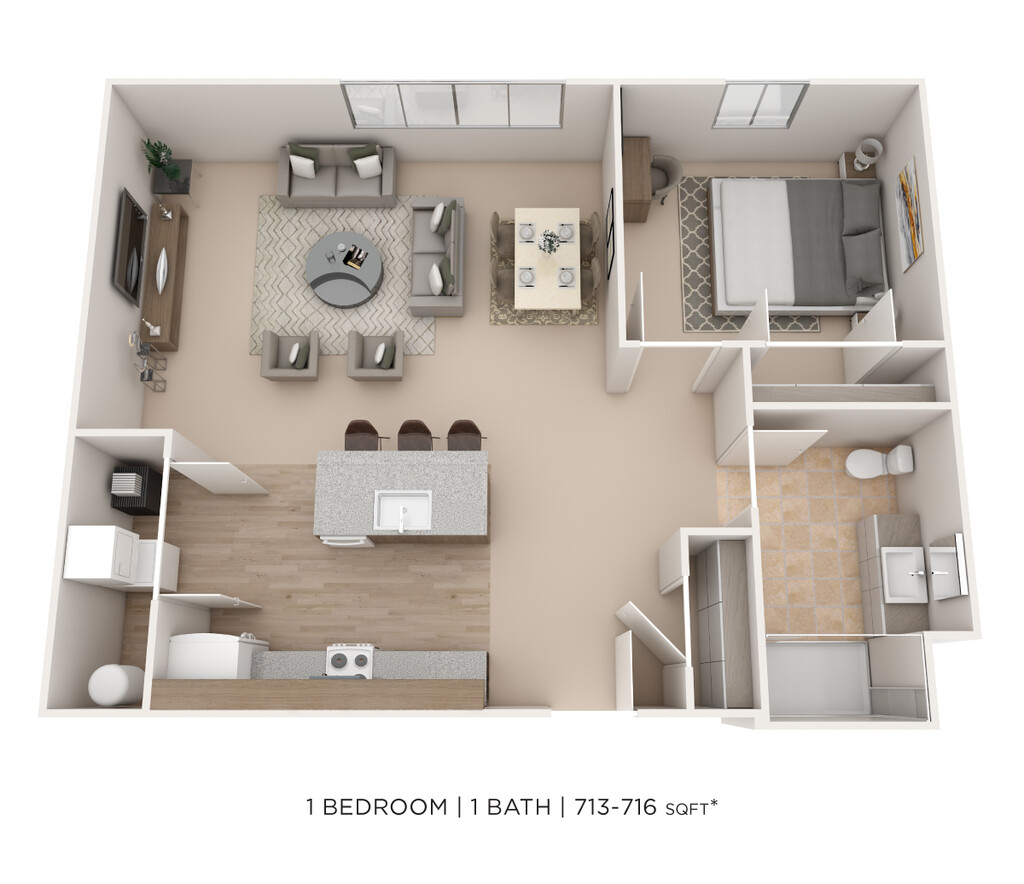 1 Bed, 1 Bath, 716 sq ftModel Gallery