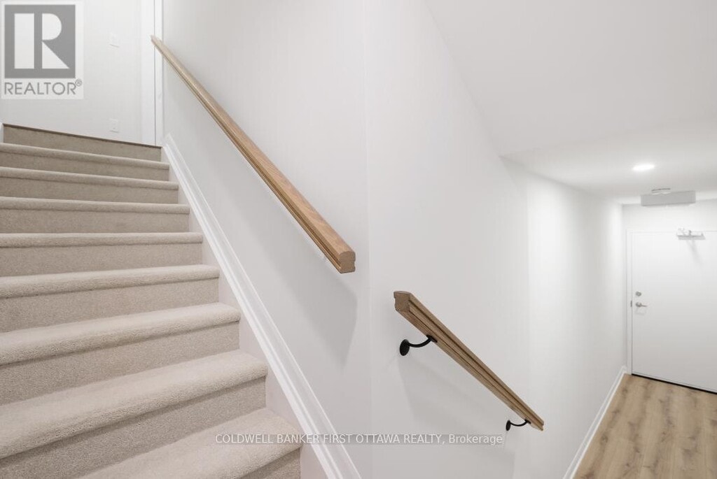 Step into contemporary living in this bright and spacious brand-new upper end-unit stacked townhome. Offering 1272 sq. ft. of thoughtfully designed space,this home features TWO bedrooms EACH WITH THEIR OWN ENSUITE,plus a convenient main floor powder room. The stylish kitchen boasts quartz countertops,stainless steel appliances,and direct access to a private deck-perfect for morning coffee or evening relaxation. Enjoy carpet-free living (stairs only),modern finishes,and an abundance of natural light throughout. Includes one underground parking space for added comfort and security. Ideally located with easy access to Hwy 417,minutes to Kanata Centrum,Tanger Outlets,and Canadian Tire Place for shopping,dining,and entertainment. A beautiful new home in a prime Kanata location - ready for its first occupants! (id:52069) ID#: 1487027