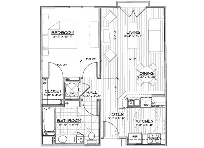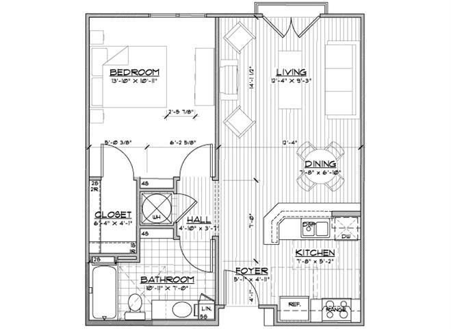 Apartment Model: 1 Bed 1 Bath1 Bedroom, 1 Bath, 672 sq ftUnavailable1 Bed 1 Bath - Floorplan 1 1 Bed 1 Bath