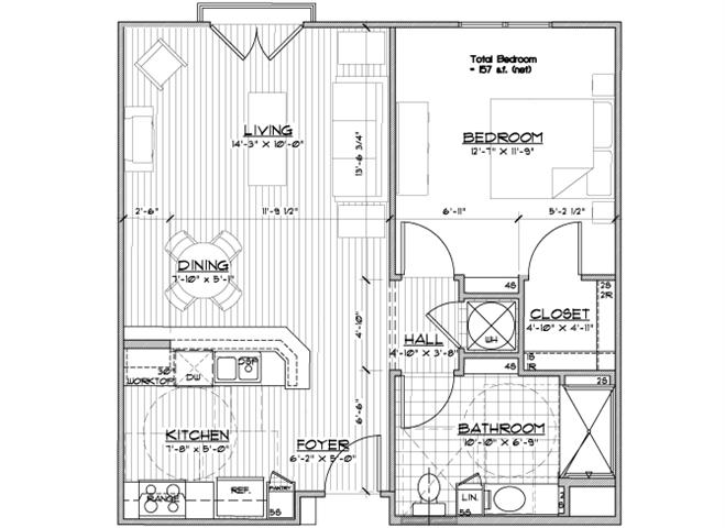 Apartment Model: 1 Bed 1 Bath1 Bedroom, 1 Bath, 719 sq ftUnavailable1 Bed 1 Bath - Floorplan 1 1 Bed 1 Bath