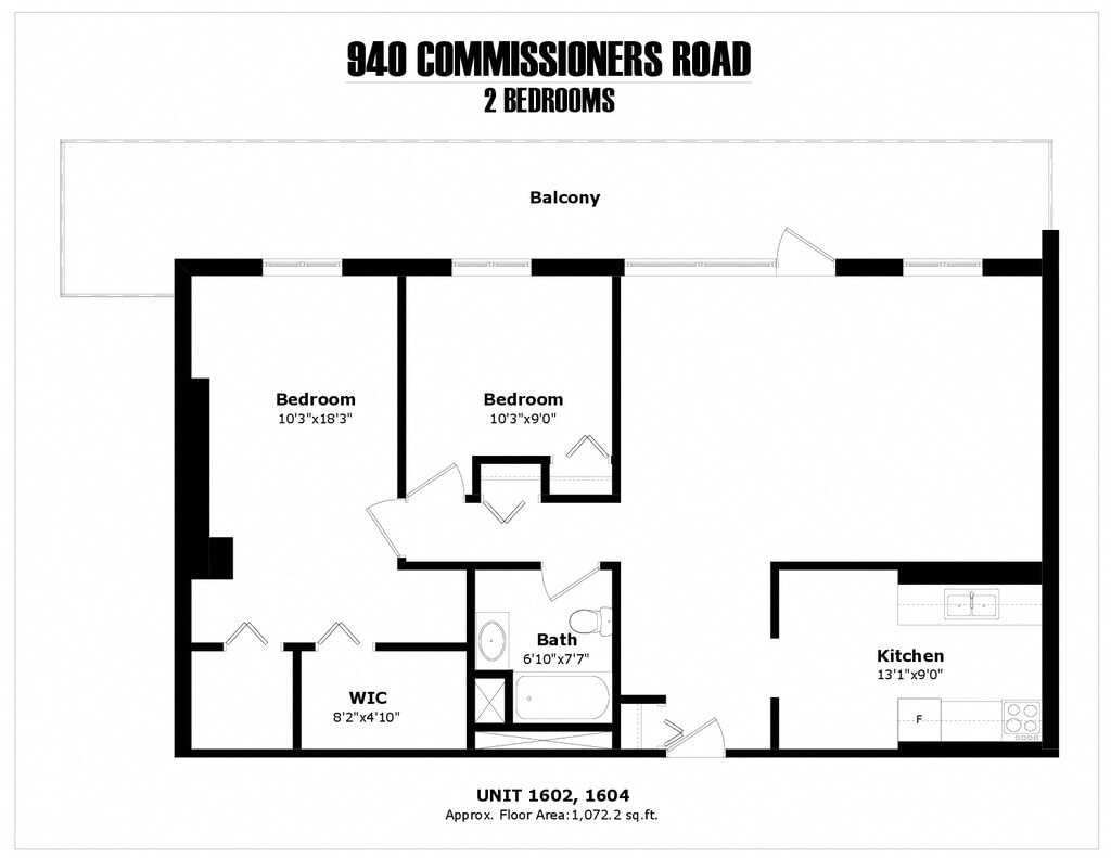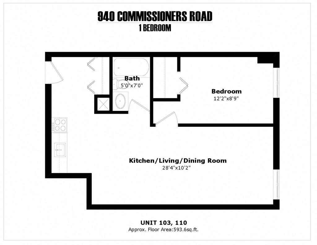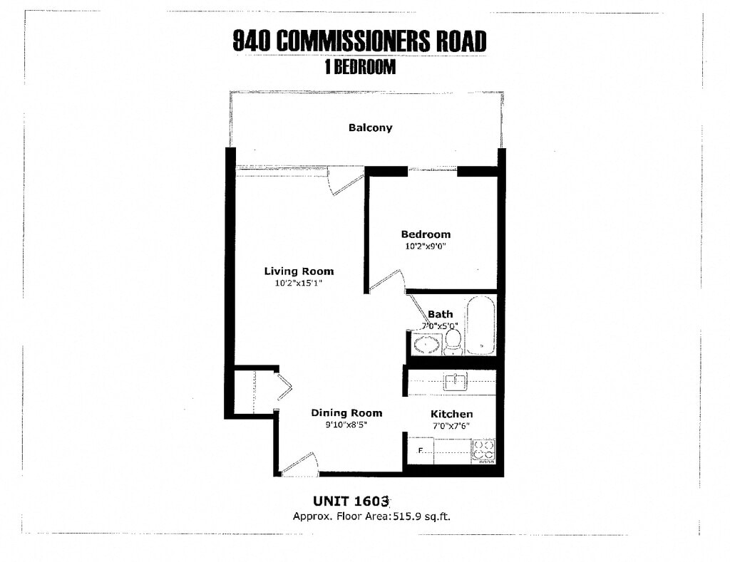 1 Bedroom to 2 Bedroom Apartments at 940 Commissioners Road East currently range from $1,597 to $1,797