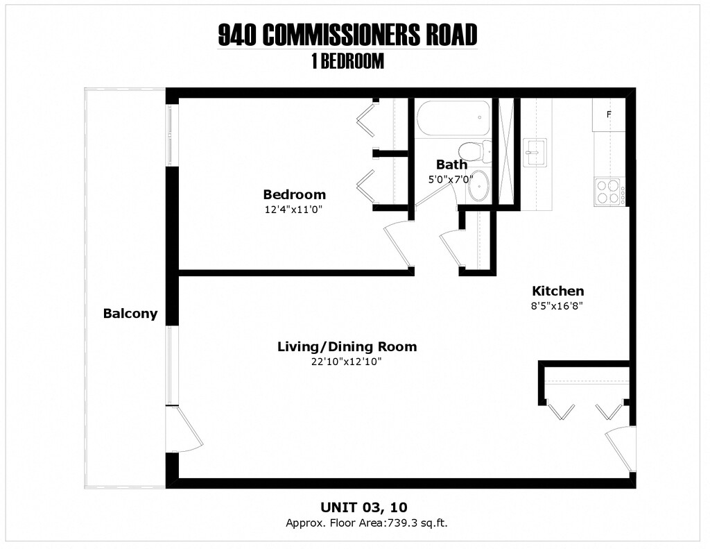940 Commissioners Road East offers 1 to 2 Bedroom apartments starting from $1,597 and having 636–1,066 sq ft. Here is the current pricing and availability: