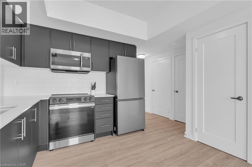 AVAILABLE NOW! Enjoy the convenience of main-floor living in this brand-new 2-bedroom,2 full-bathroom stacked townhome in Fergus’s sought-after Sunrise Grove community. With no stairs to climb,this accessible layout is practical,comfortable,and perfect for everyday living. Step inside to a bright,open-concept design featuring durable flooring,a modern kitchen with stainless steel appliances and quartz countertops,and a spacious living/dining area ideal for relaxing or entertaining. Large windows fill the space with natural light,creating a warm and inviting atmosphere. The home offers two generously sized bedrooms,including a primary suite with excellent closet space. You’ll also appreciate the convenience of two full bathrooms—one with a tub and the other with a walk-in shower—providing comfort and flexibility for any lifestyle. In-suite laundry,a designated parking spot,and professional property management add to the ease of living. Surrounded by peaceful green space and located just minutes from downtown Fergus,Elora Gorge,scenic parks,and everyday amenities,this main-floor unit offers the perfect blend of accessibility,style,and convenience. Available for immediate occupancy. (id:52069) ID#: 2185171