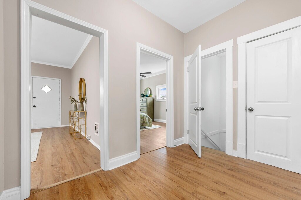 Completely renovated! Step into this beautifully remodeled 2-bedroom, 1-bath bungalow, where modern updates meet cozy charm! Features stylish finishes, and a thoughtfully designed layout. The spacious living area is warm and inviting, highlighted by fresh neutral tones and luxury vinyl flooring. The updated kitchen boasts traditional cabinetry, new granite countertops, and updated appliances, making meal prep a breeze. Both bedrooms offer ample space and natural light, while the renovated bathroom shines with modern fixtures and finishes. Outside, enjoy a huge cozy fenced-in backyard space, perfect for summer gatherings and furry friends. Conveniently located near shopping, dining, and parks, this home offers the best of comfort and convenience.