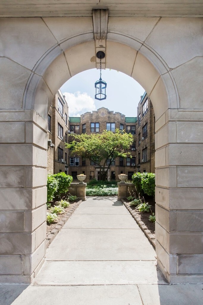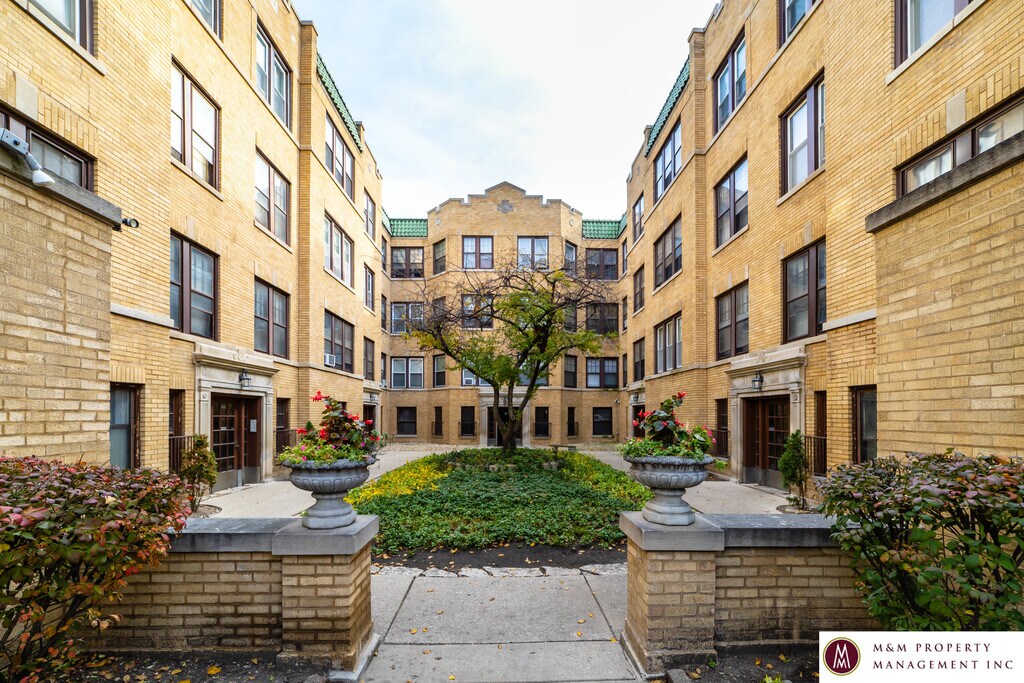 Vintage courtyard building in the heart of South Oak Park, blocks from the CTA blue line.