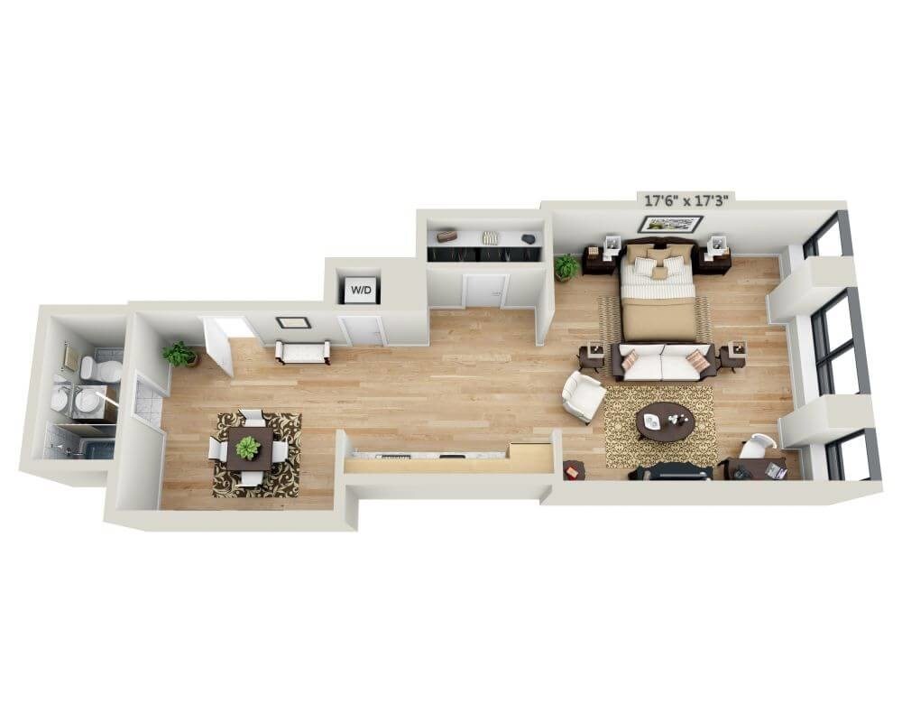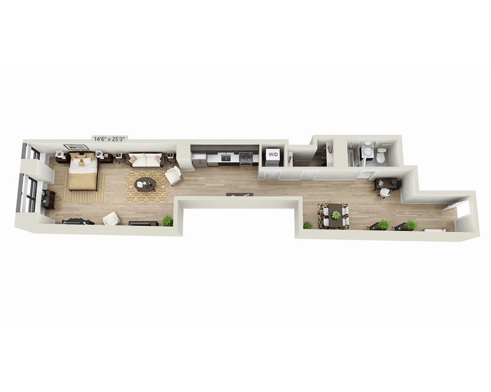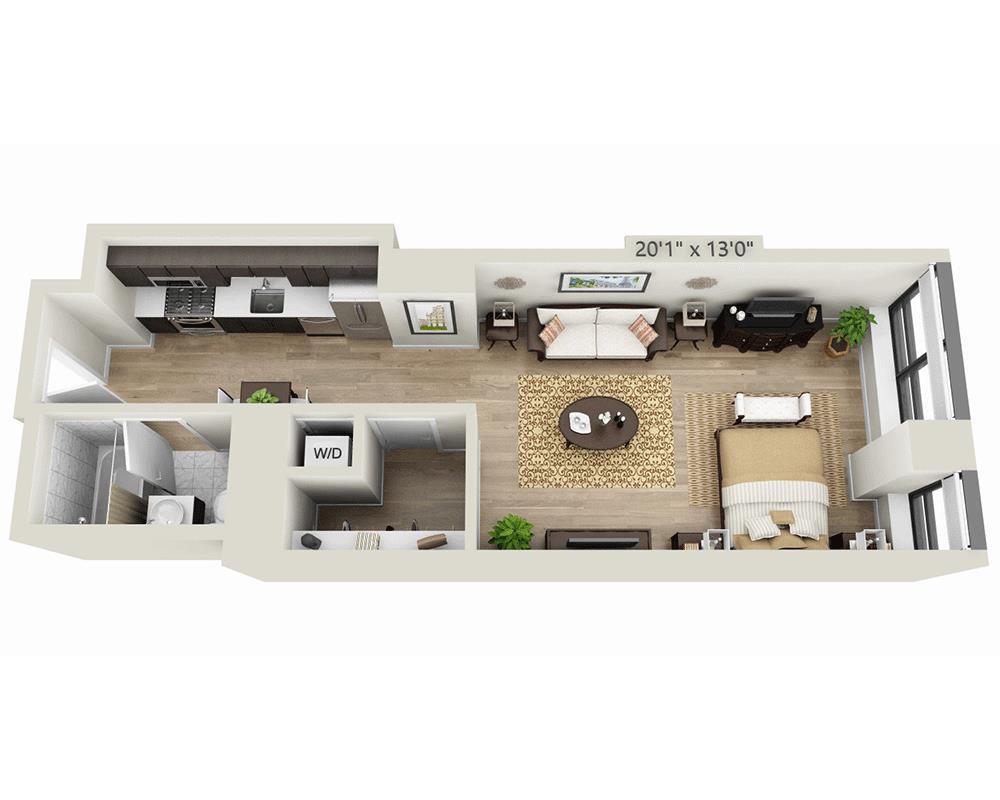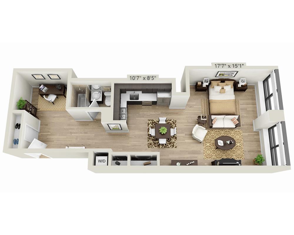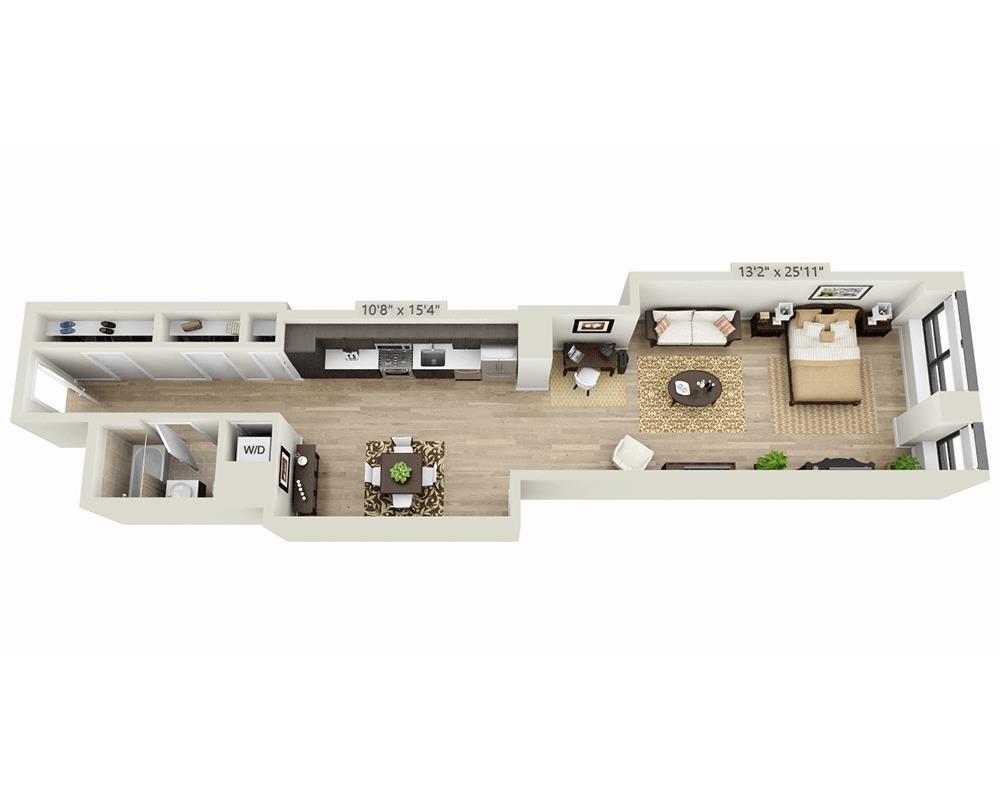 Studio E1YD - Floorplan 1 Apartment Unit: 01-208Apartment Model: Studio E1YD$3,996Studio, 1 Bath, 591 sq ftAvailable NowFloorplansPhotos![]()