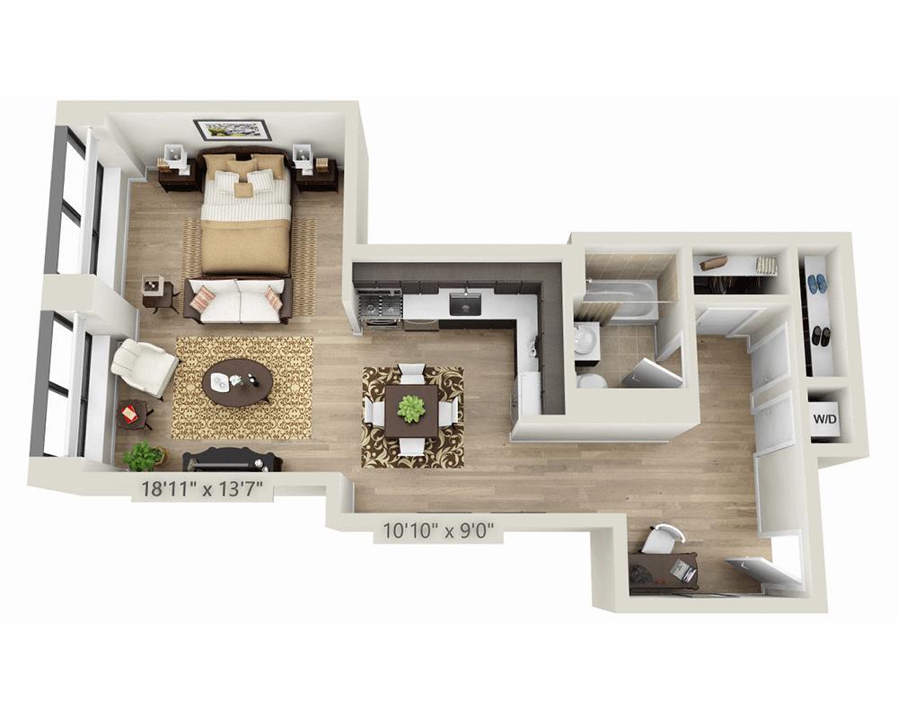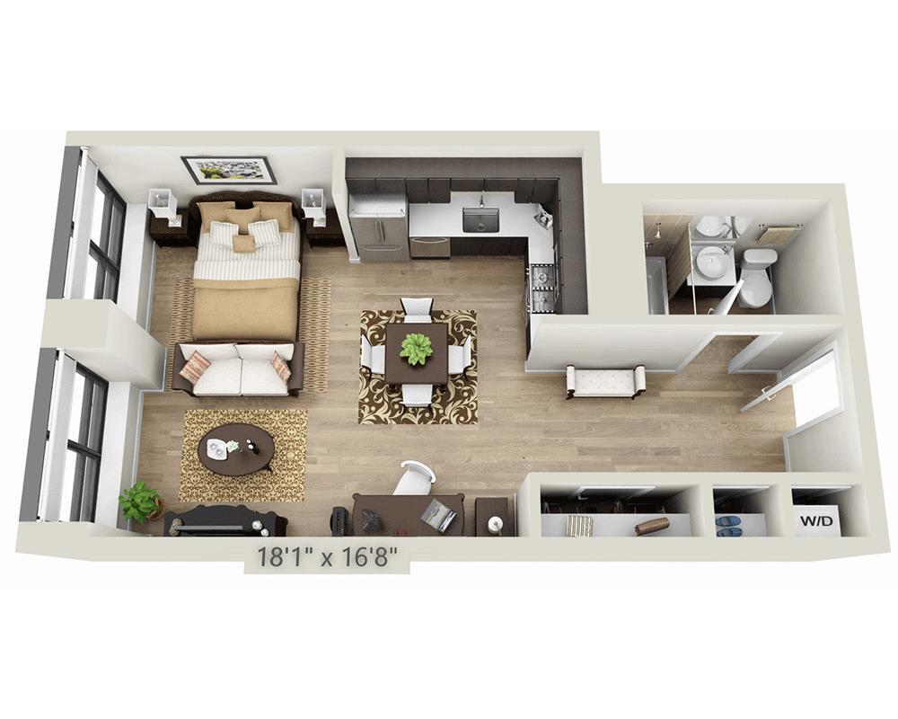 Studio, 1 Bath, 591 sq ftAvailable NowModel Gallery