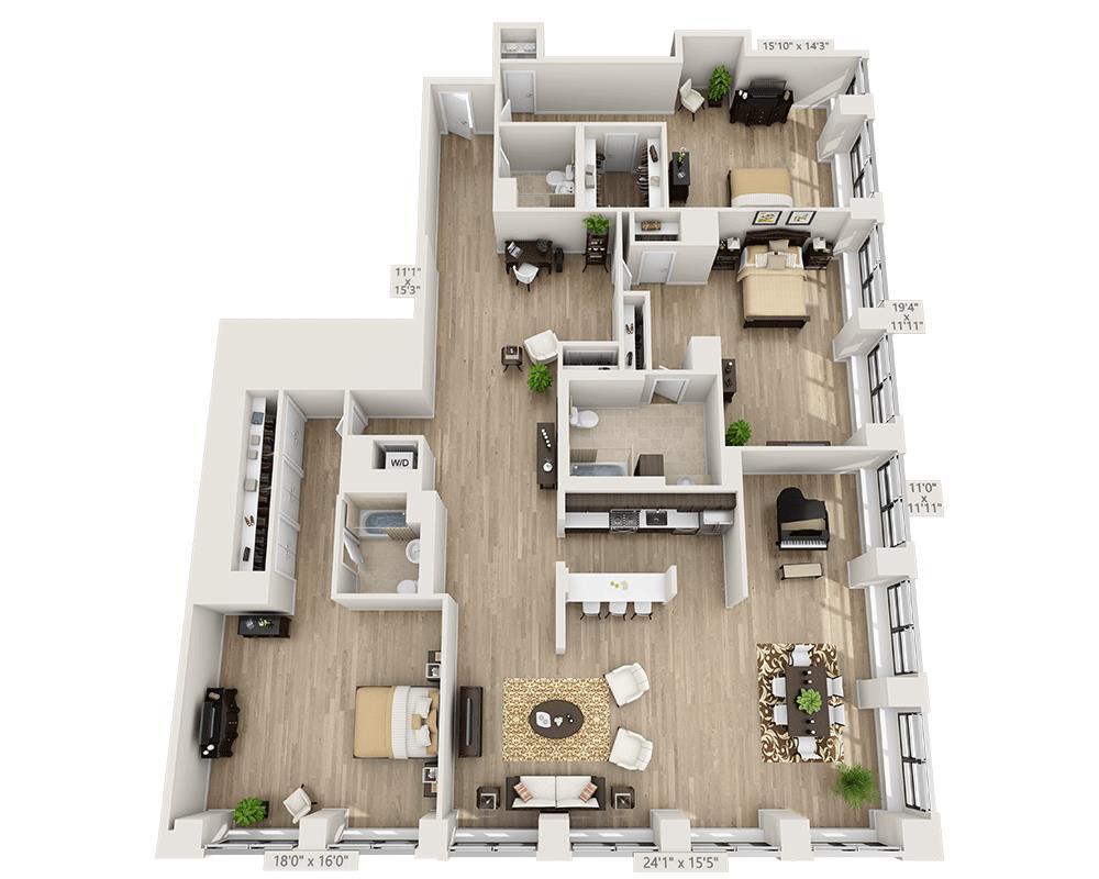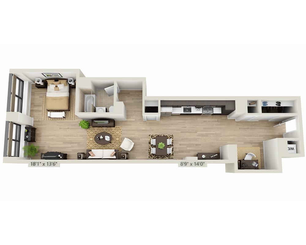 Studio E1YP - Floorplan 1 Apartment Unit: 01-1714Apartment Model: Studio E1YP$4,245Studio, 1 Bath, 766 sq ftAvailable December 19, 2025![]()