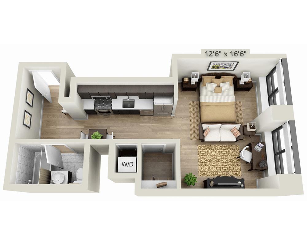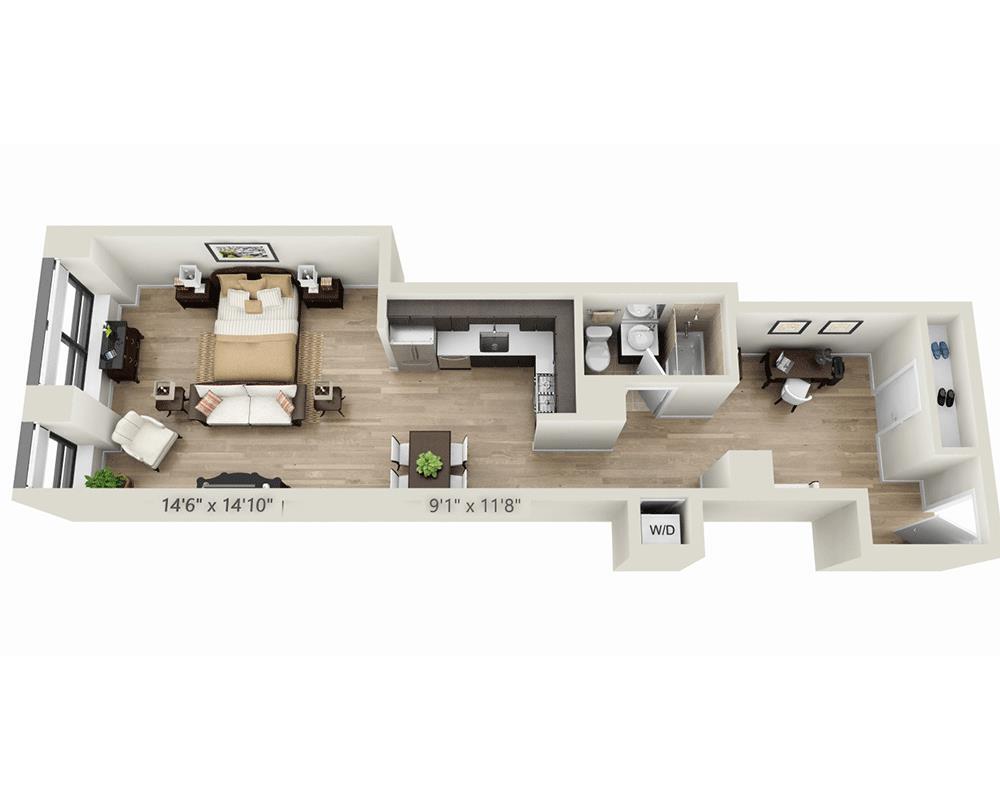 Studio, 1 Bath, 576 sq ftAvailable January 8, 2026Model Gallery
