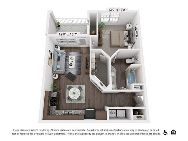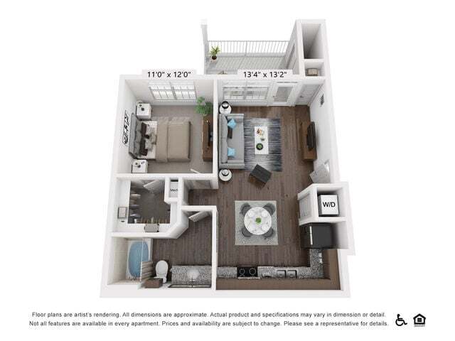 Apartment Model: A3From $1,1311 Bedroom, 1 Bath, 745 sq ftAvailable NowFloor plans are artist's rendering. All dimensions are approximate. Actual product and specifications may vary in dimension or detail. Not all features are available in every rental home. Prices and availability are subject to change. Base rent is based on monthly frequency. Additional fees may apply, such as but not limited to package delivery, trash, water, amenities, etc. Deposits vary. Please see a representative for details.