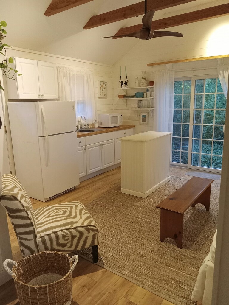 Cozy winter rental Cottage. In the heart of Brewster with access to all Brewster has to offer. This one bedroom cottage is setback and offers secluded setting Step into a sun filled open living space. With cathedral ceilings and a slider that opens onto a small pond. A little oasis Surrounded by nature. Features a Kictchen/ dining area. A full bath with a claw foot tub to soak and relax in at the end of the day. Sleeping area with a comfortable Queen size bed. Outside sitting area has a Bar-b-que. Fully furnished and also Includes heat, electric, streaming T.V, trash pick up and parking. Excellent location, near bike path, Nickerson State Park, ponds, dining with Bay beaches just a breath away!