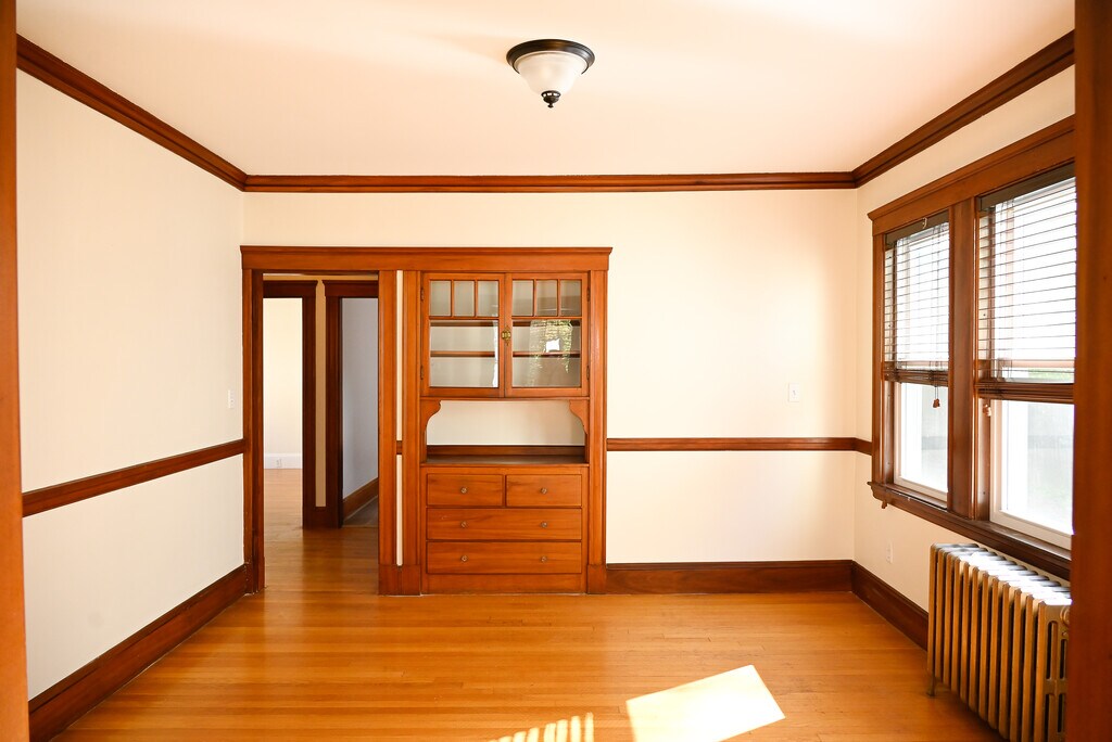Lovely tasteful, spacious, sunny apartment with beautiful woodwork throughout the unit and its located on a quiet street near Newtonville Square. Recently updated bathroom and kitchen with new appliances. Flexible layout has 1-2 bedrooms or office & bathroom and kitchen. This unit features Hardwood floors throughout, built in china cabinets and bookshelves, and laundry in unit, ample storage in basement. Has garage and parking in driveway and private backyard. Location is commuters dream and commuter rail minutes away. The area has endless eateries, pharmacies, grocery markets,movie theater, pubs and many modes of transportation. Fenced in yard and small deck. A must see. Available Oct 1st.