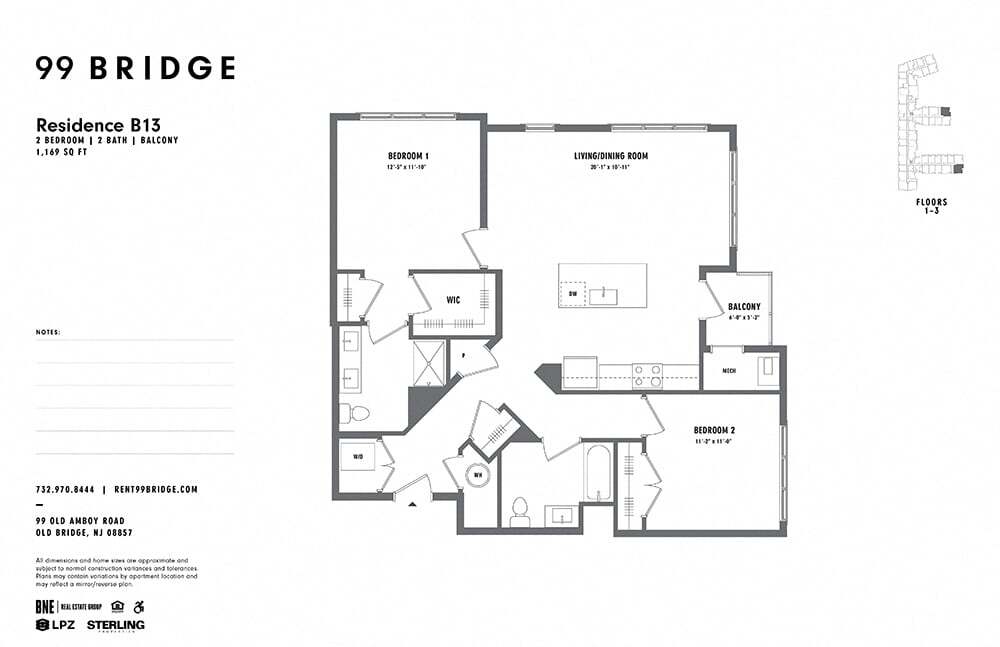 99 Bridge offers 1 to 2 Bedroom apartments starting from $2,635 and having 758–1,169 sq ft. Here is the current pricing and availability: