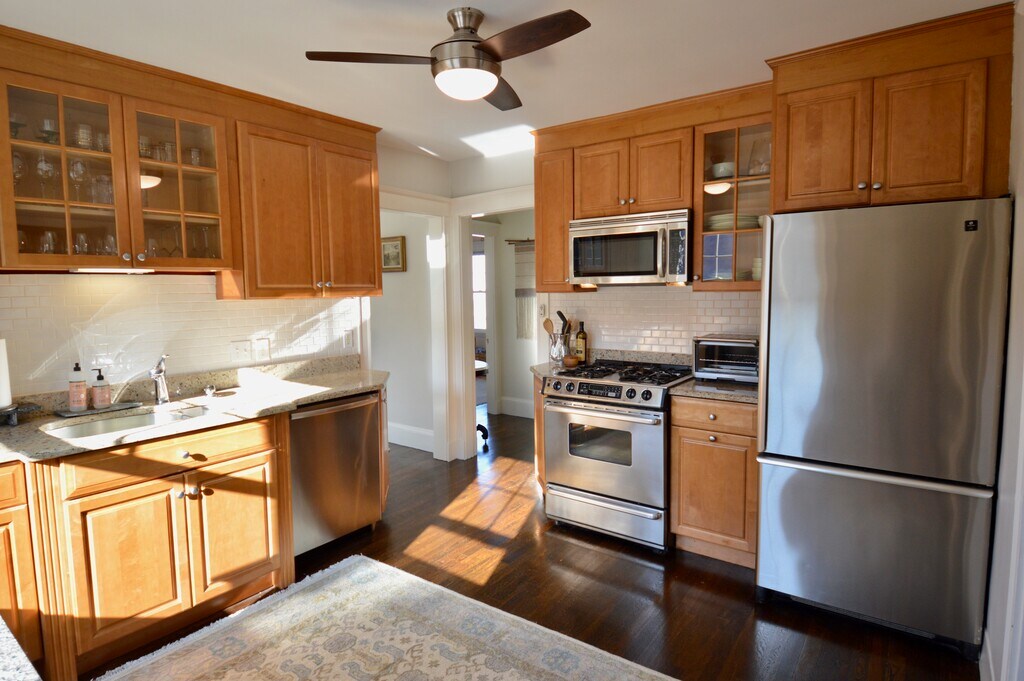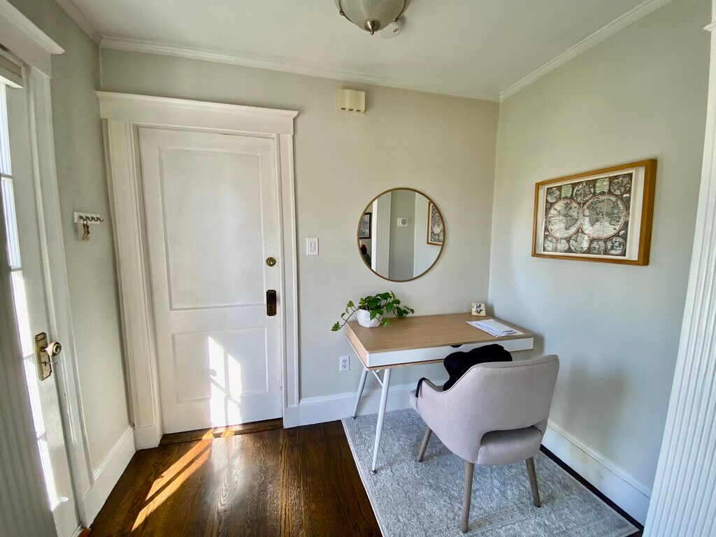 Gorgeous top floor condo for rent near Fallon Field, Arboretum, Commuter Rail and Roslindale Village with all it has to offer. This unit is 1000 square feet with 2 good size bedrooms, laundry in unit, garage parking, storage in basement, yard, front and rear porches. Available as early as 12/1/25. Pets may be negotiable with references. The kitchen has stainless steel appliances which include a gas stove, built in microwave, granite countertops, Bosch dishwasher, and a garbage disposal. You will find your in unit laundry right off of the kitchen as well as a private rear deck overlooking the backyard. Large living and dining room with a perfect area for a home office. Two good size bedrooms are separated by the tiled bathroom with a deep tub, shower, and Robern mirrored medicine cabinet. This unit faces southwest and has windows all around so gets great light. Storage in basement and one garage parking space included, street parking is easy if you have more than one car (no permits needed). Owner has taken great pride and care of the property and hopes the next tenant will do the same. Please feel free to call, text, or email with questions or to schedule a viewing.