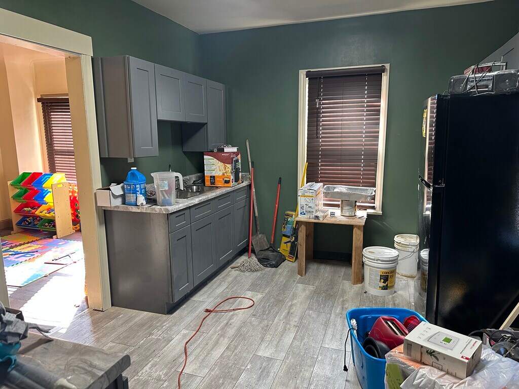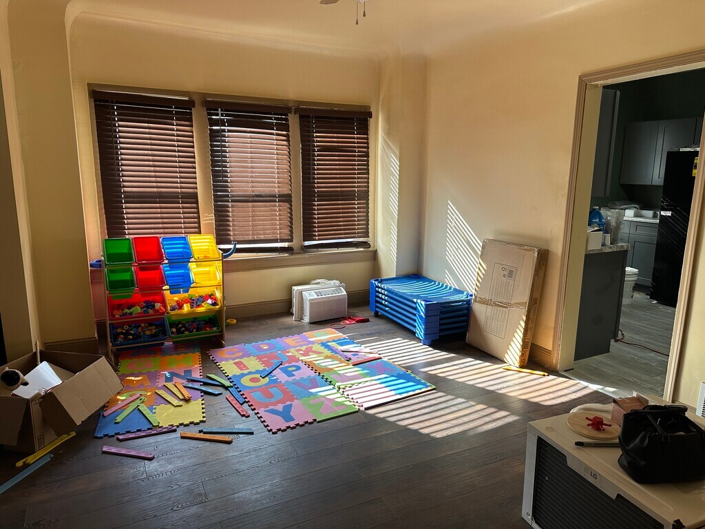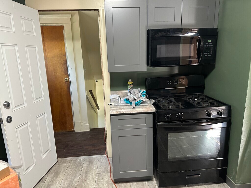 Spacious Fully Remodeled Unit. New Kitchen equipped W/ New appliances (refrigerator, stove, microwave New Bathroom, New Floors. Unit is located Up with own front door. Kitchen, Dining room, Great room with open concept that leads to a space that can be used for a Family room etc..