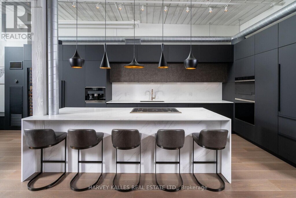 A one-of-one masterpiece in Toronto's legendary Candy Factory Lofts,where a top-to-bottom custom renovation meets a spectacular private terrace and unmatched attention to detail. This rare two-storey penthouse is a true showpiece,complete with two parking stalls and a design that perfectly balances industrial soul with refined modern living. Every inch of this home has been meticulously reimagined. The custom HVAC integration preserves the open window line,while soundproofed walls and a Lutron-controlled lighting system create an effortless,ambient flow. Select-grade wide-plank white oak floors,low-iron Starfire glass railings,and a one-piece honed marble island set the tone for the Italian-crafted kitchen and open living space. The kitchen blends form and performance with Wolf double ovens (including steam),a rare in-unit gas grill with downdraft,Sub-Zero refrigeration and wine column,Miele coffee system,and concealed bar and pantry storage. Upstairs,dual bi-fold glass doors (craned in) open to an expansive terrace with a Wolf BBQ station,outdoor fridge,and linear fireplace,creating an entertainer's dream with unobstructed sunset and skyline views over the park. Outfitted with five Sonos zones,three Samsung Smart TVs (including one outdoors),dual Nest thermostats,and a professionally managed Lutron system,every feature is deliberate,connected,and elevated. Both bathrooms feature Toto fixtures and Kohler upgrades,and the home includes weekly cleaning,monthly organization,and on-site car detailing,with annual patio care and storage included. An irreplaceable residence that defines what true loft luxury can be. PH 12 at The Candy Factory is a singular home for those who value design,craftsmanship,and the rarest of outdoor spaces. (id:52069) ID#: 1959605