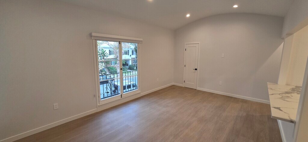Recently gut renovated unit. Kitchen includes high-end stainless steel appliances and in-unit washer and dryer. Light oak color floors flow seamlessly throughout the living areas, with high-end insulation for privacy and quiet living, tons of natural light, and high ceilings. Located on a quiet tree-lined street in Beverly Hills, walking distance to restaurants, shopping, and hotels.