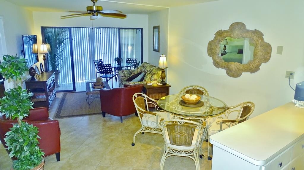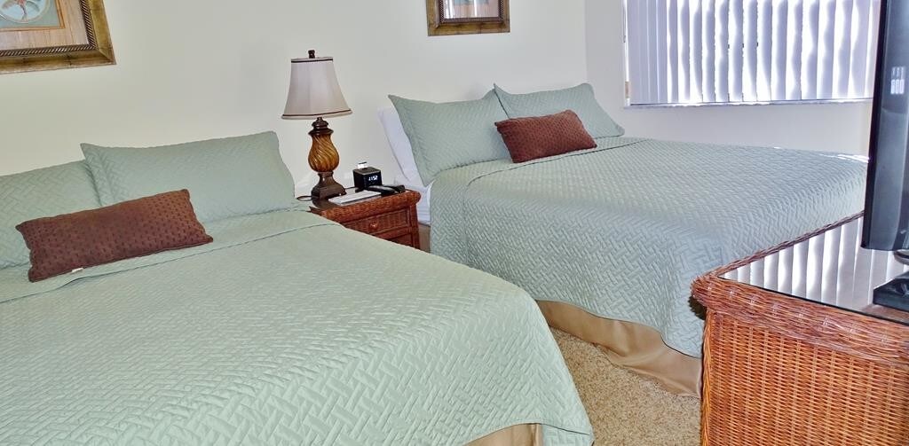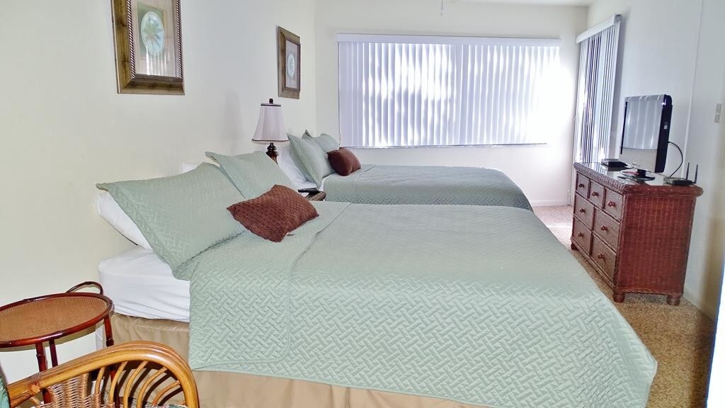 GREAT One bedroom-one bath, Top floor unit with Trendy decor ! Nice private balcony with tranquil courtyard views out toward the pool area. Bedroom has two Queen Beds and main living area offers extra Guests a sofa sleeper. Enjoy the amenities on-site which include two pools-two spas-tennis and a Tiki Bar. Resort is waterfront and also offers boat dockage ($). Perfect Island location close to Town...walking distance to area Restaurants and shopping. 2 Flat Screen TVS WiFi No smoking Maximum Occupancy: 5 Minimum Stay: 7 nights Rate premiums may apply based upon requested dates of stay. All Utilities Included in Rent (cable, internet, water, etc.).