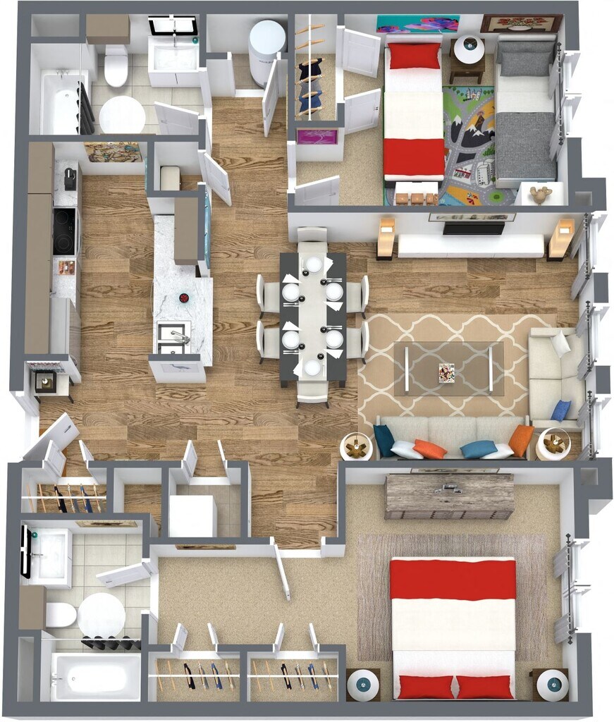 Apartment Model: 2 Bedroom - 120% AMI2 Bedroom, 2 Bath, 906-997 sq ftAvailable Now![]()