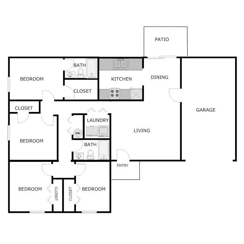 4 Beds, 2 Baths, 1580 sq ftModel Gallery