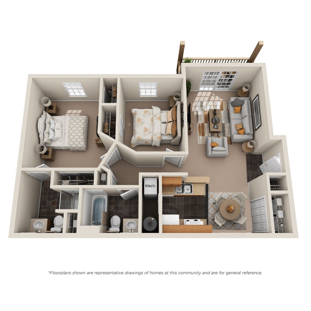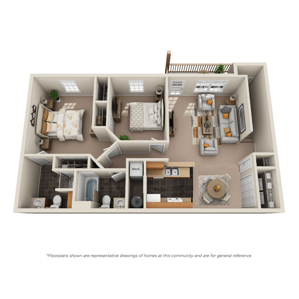 2 Beds, 2 Baths, 1022-1046 sq ftAvailable NowCheapest 2 BedroomThis is the cheapest 2 Bedroom at this PropertyModel Gallery