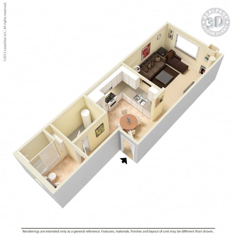 Studio, 1 Bath, 502-504 sq ftPlus FeesAvailable NowModel Gallery