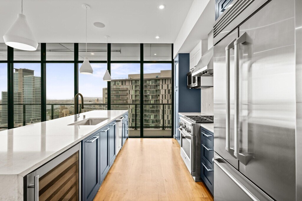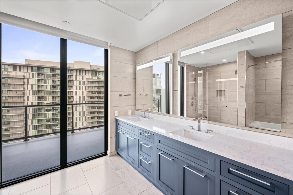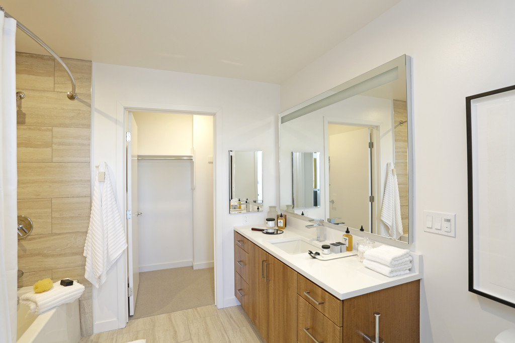 Airy open layouts, oversized windows, light filled spaces, an industrial vibe, and a view. Its all designed to feel as good as it looks. Modern kitchen with quartz countertops, stainless steel appliances, designer fixtures and large under-mount stainless steel sinks. Primary bathrooms equipped with rainfall showerheads and illuminated vanity mirrors. Bike storage, temperature control, and front-load washers and dryers. The must-haves, the nice-to-haves, the dream amenitiestheyre all included to help you live better.
