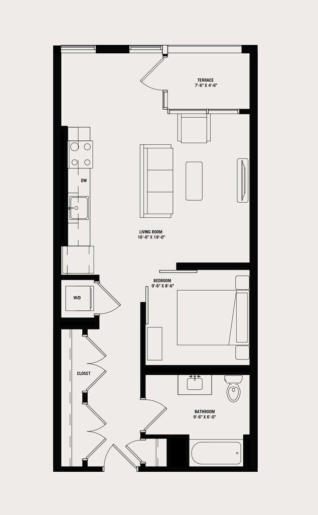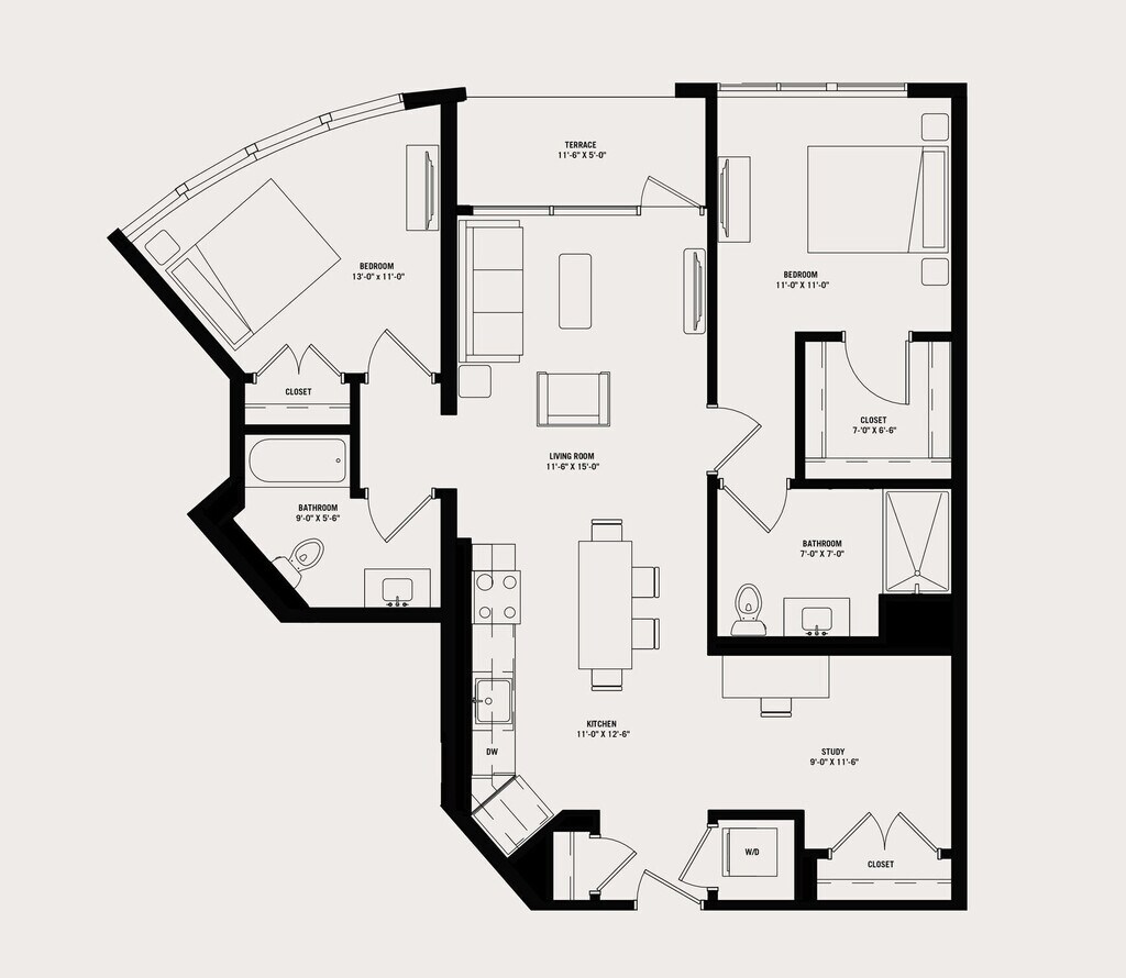 1 Bed, 1 Bath, 568 sq ftModel Gallery