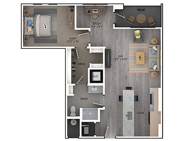 Studio, 1 Bath, 658 sq ftLargest StudioThis is the largest Studio at this PropertyModel Gallery