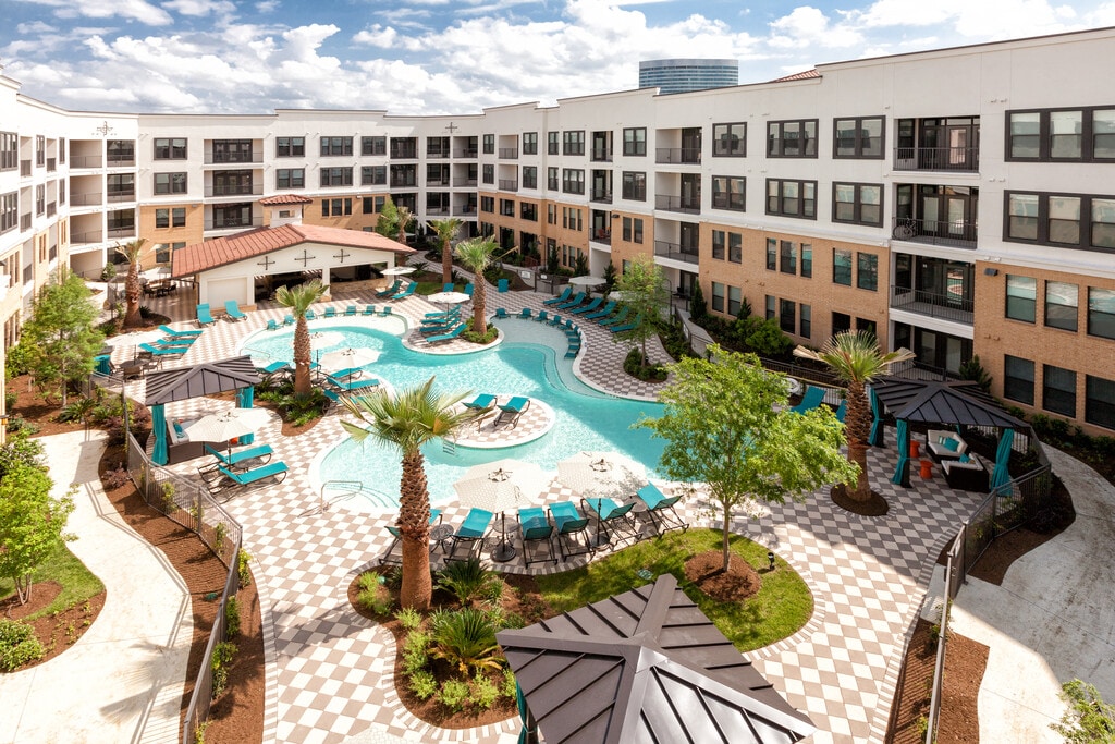 Sprawling resort-style courtyards equipped with pools and planted with palms, our studio, 1- and 2-bedroom Las Colinas apartments have you living in the midst of the neighborhood's best destinations. Scenic Lake Carolyn is minutes away, as are the sprawling green spaces of the Campion Trail, the quick-and-convenient DART station and the Toyota Music Factory. Enjoy the benefits of luxury alongside all the comforts of home with gourmet kitchens, designer lighting packages and patios, balconies and yards that are both spacious and private. All of this is offered sustainably, with an array of rooftop solar panels powering all community common spaces and the building is certified at LEED Gold.